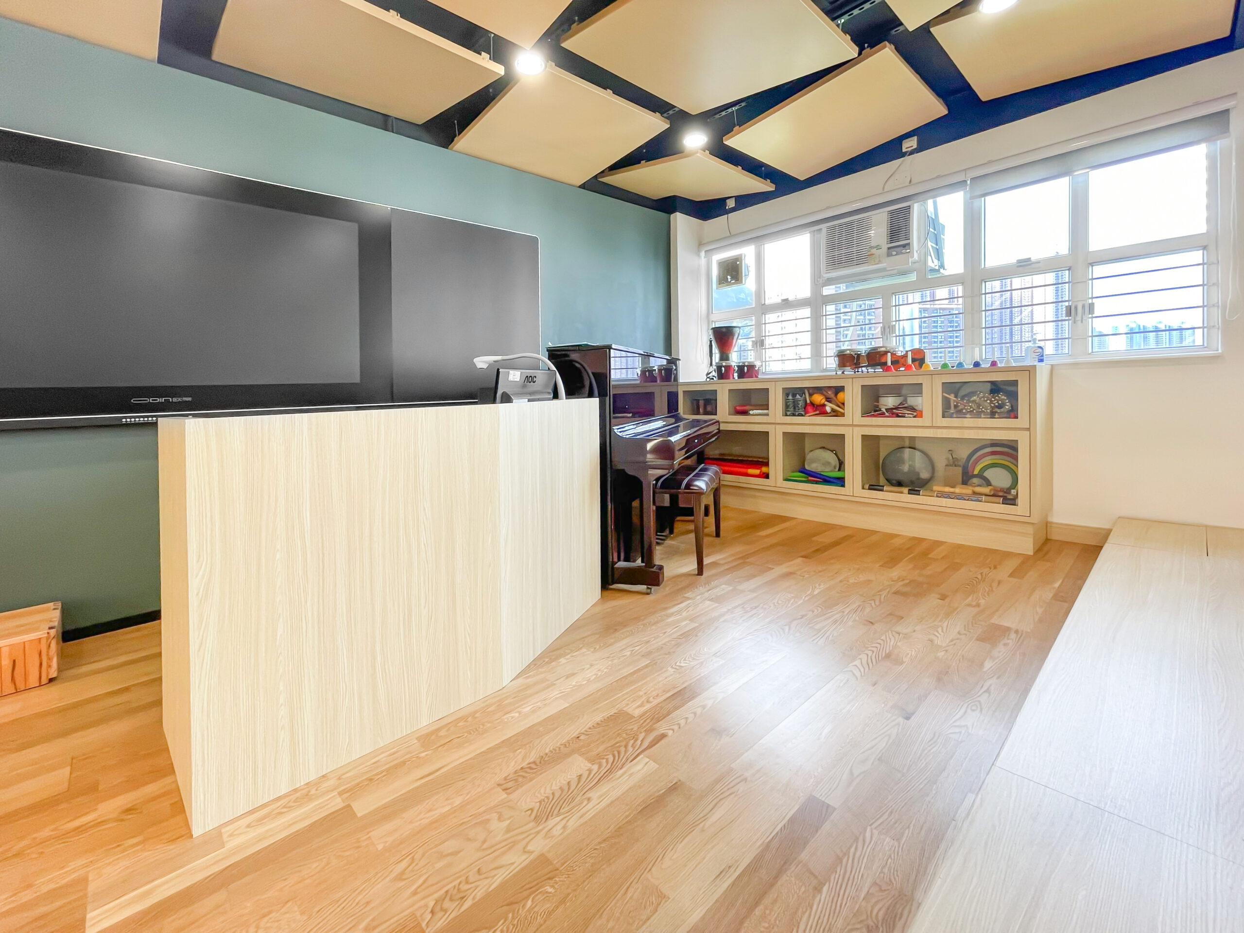 – 傢俬(木台階可掀蓋儲物、樂器櫃、老師檯連抽屜)