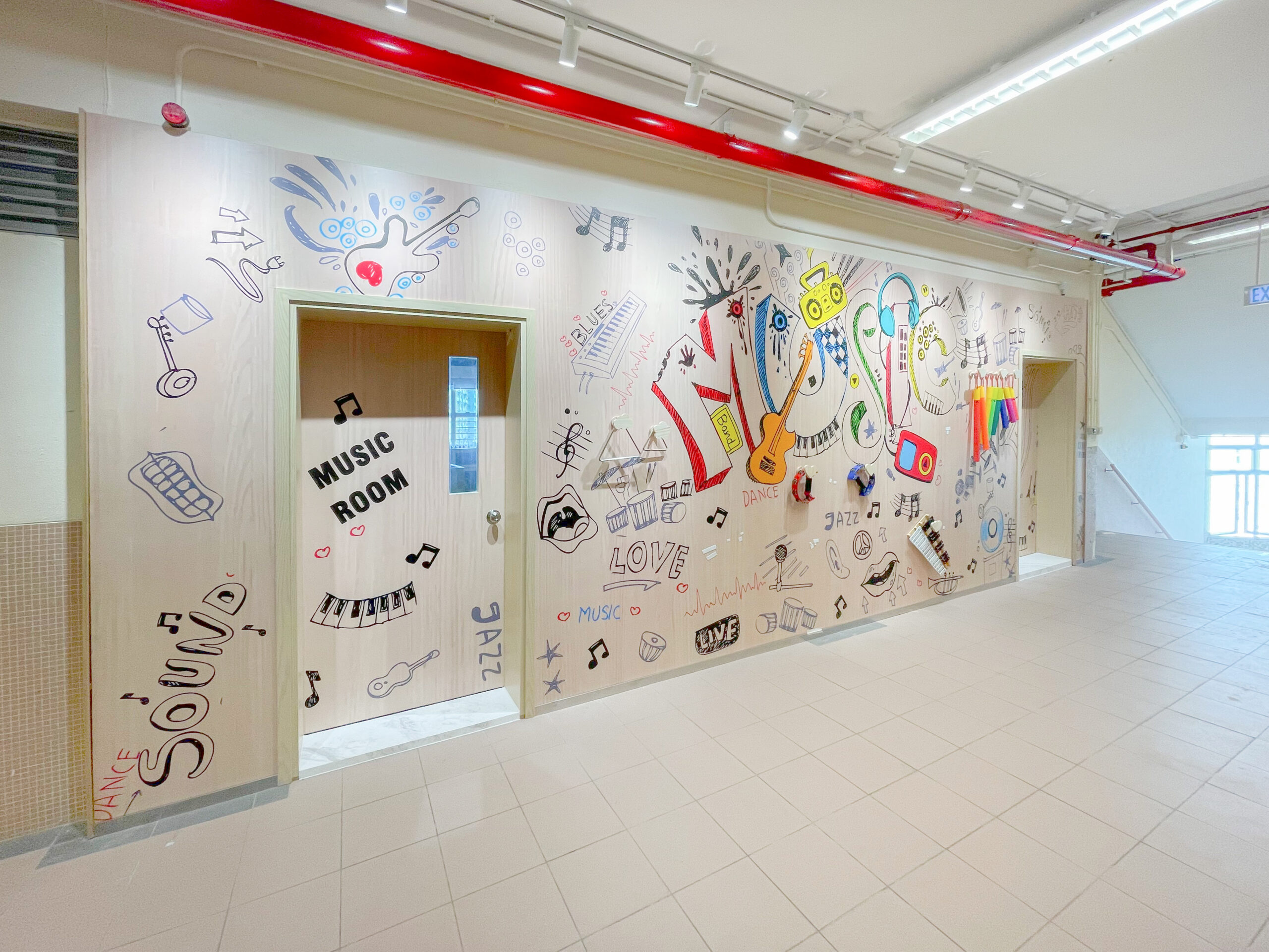 – 走廊外牆音樂元素特色牆及門